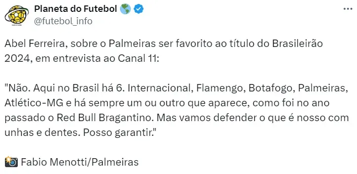 “O futebol é dinâmico demais e qualquer boa fase de três, quatro, cinco vitórias alça um time lá para cima ou para o meio da tabela, às vezes de forma consistente e definitiva”, afirmou.