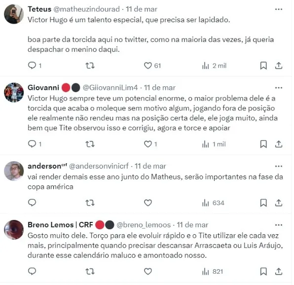 O cria do Mengão está a dois anos no profissional, e está bem próximo de atingir mais de 100 jogos com a camisa rubro-negra. Até aqui, ele marcou seis gols e seis assistências. Além disso, foi muito elogiado por Dorival Júnior e Jorge Sampaoli, antigos técnicos.