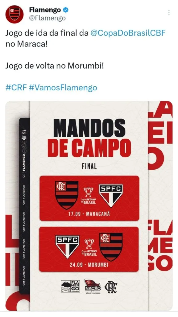 O jornalista Renato Maurício Prado vê um Flamengo ameaçado na Copa do Brasil, isso porque não poderá contar com Arrascaeta e Luís Araújo, e ainda o próprio resultado do sorteio do mando de campo dos jogos da decisão, colocando a decisão no Morumbi. “Isso complica ainda mais o jogo no Rio, pois a tentativa de recuperação do gramado carioca será encurtada em uma semana. Pior, impossível.”, escreveu RMP em sua coluna no UOL.