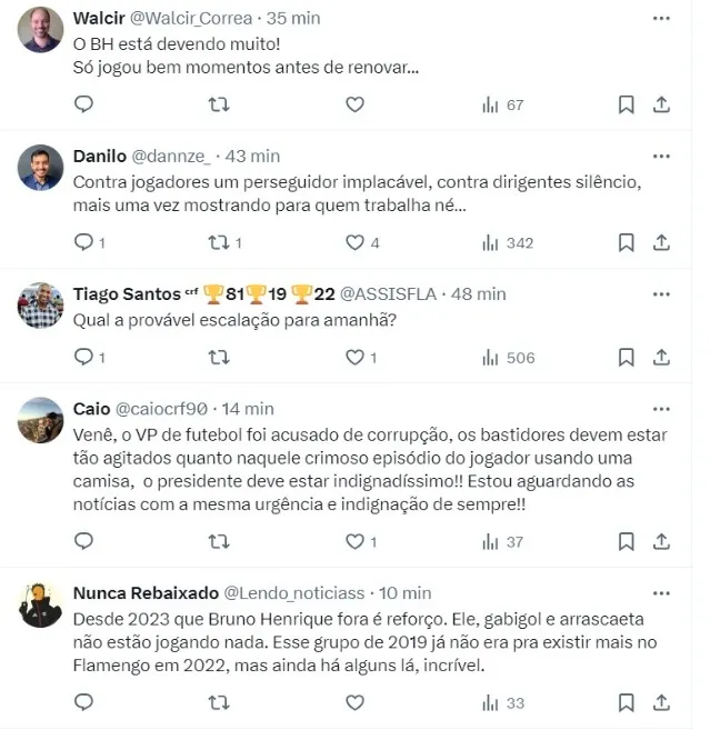 “Embora tenha treinado com o grupo recentemente, Bruno Henrique está fora do duelo do Flamengo com o Millonarios, nesta terça, pela Libertadores. A ideia é que o atacante retorne no domingo, contra o Vasco, pelo Brasileirão“, escreveu Venê Casagrande.