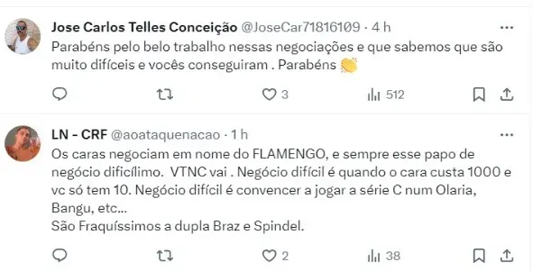 “É um trabalho feito em conjunto com toda estrutura do Flamengo, desde o presidente até o Tite. Também tem o Renan, chefe de scouting…”, falou o dirigente do Mengão.