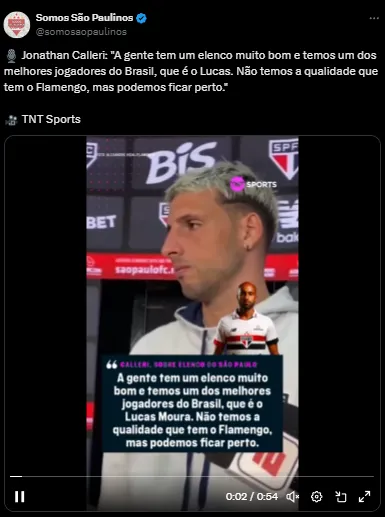 O atacante argentino do São Paulo, Calleri, concedeu uma entrevista após a partida contra o Cruzeiro. Ao falar sobre seu time, ele destacou que o elenco do Tricolor é um dos melhores do Brasil.