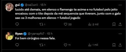 O fato é que ele citou o Flamengo de Tite nesse assunto. Isso se faz porque para ele, o único elenco que está acima do SPFC, e seria consequentemente o melhor do país, era o do Fla.