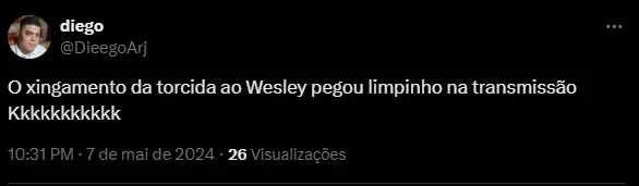 Após esse lance, os flamenguistas nas arquibancadas não aguentaram e soltaram um grito que até a transmissão captou: “Ei, Wesley, vai tomar no …”, foi o recado passado pela arquibancada.