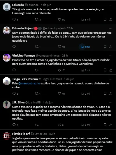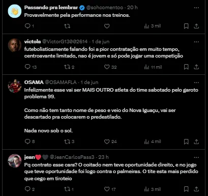 “Carlinhos, vale ressaltar, só pode jogar pelo Fla no Brasileirão. Na Copa do Brasil já atuou pelo Nova Iguaçu. Na Libertadores, o atacante será inscrito pela diretoria a partir das oitavas”, informou Venê.
