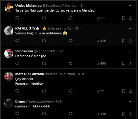 Uma situação que chamou atenção e repercutiu na Nação na web. O atacante Carlinhos, da Laranja Mecânica, que já foi contratado pelo Mengão, não entrou em campo neste duelo pela final.