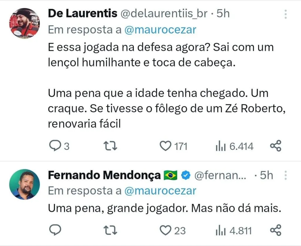 A torcida acompanhou o pensamento do jornalista. “O cara é fera! Flamengo que extrair o máximo desse cara, tanto dentro de campo, e principalmente fora!”, comentou um internauta (SIC).