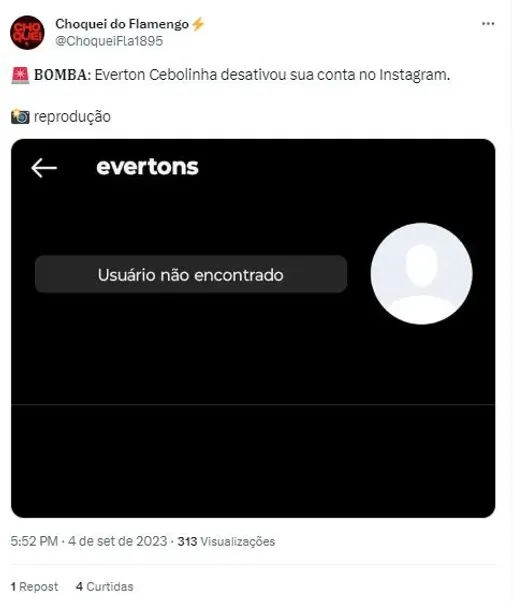 Entretanto, muitos passaram do tom e partiram para ataques ao jogador, que tomou uma atitude inusitada nesta segunda-feira (4). Diante das inúmeras manifestações pesadas da galera em suas redes sociais, Cebolinha desativou sua conta no Instagram, calando de imediato as postagens que questionavam seu rendimento.