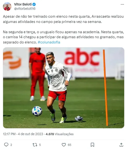 Isso porque segundo o Globo Esporte, o craque pode voltar a jogar contra o Corinthians. Arrascaeta está na reta final da recuperação física, ainda por causa de uma lesão na coxa esquerda, e está agora na fase de transição para o campo. O craque passa a ser opção na próxima rodada, fora de casa, quando a equipe pode voltar a vice-liderança em caso de vitória em São Paulo. Além de Arrasca, outro uruguaio está de volta.