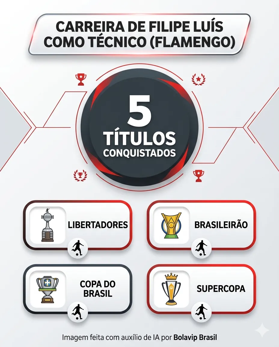 Apesar de ter uma breve carreira como técnico profissional, o ex-lateral-esquerdo já tem muitos títulos importantes conquistados. Pelo Fla, único clube que comandou, ele levantou o taças da Copa do Brasil, da Série A do Brasileirão, da Supercopa do Brasil, da Libertadores e do Campeonato Carioca.