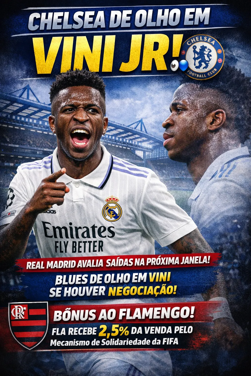 “O Chelsea está de olho na situação de Vinícius Júnior! Com o Real Madrid preparando possíveis saídas na próxima janela, caso o brasileiro esteja aberto a negociações, os Blues considerariam uma investida forte, publicou.