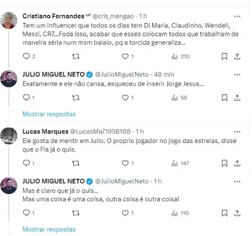 “Julio, Boa tarde, não é verdadeira essa ‘”informação”!”, esclareceu o empresário do jogador. Vale mencionar que essa não é a primeira vez que o nome de Claudinho é ligado ao Flamengo.