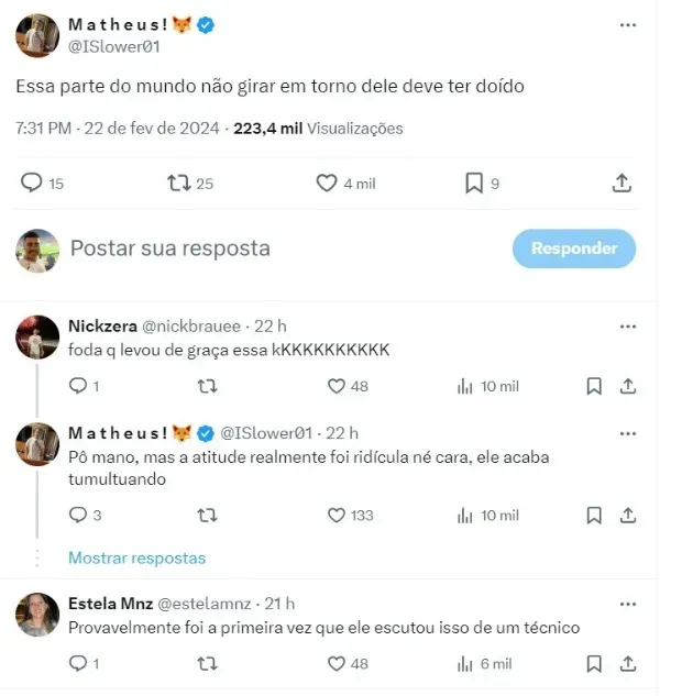 O atacante respondeu às provocações com a seguinte frase: “Eu já jogo em uma seleção”. No fim de 2023, Tite foi contratado como técnico do Rubro-Negro e ambos se entenderam em uma conversa.
