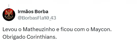 “Maycon fica no Corinthians. O Timão apresentou um projeto ao volante, pediu um voto de confiança e convenceu o jogador a ficar. Maycon tomou a decisão após uma longa reunião com a diretoria paulista. Com isso, o Flamengo não consegue a contratação do atleta mesmo que chegasse a um acordo com o Shakhtar“, escreveu Venê.