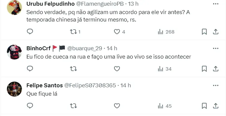 Com isso, alguns nomes vêm sendo especulado nos bastidores, dentre eles o de Oscar, atualmente no futebol chinês. De acordo com o portal local, Primeira Página, após cumprir o contrato com o Shanghai Port, que vai até o fim de 2024, o próximo destino deve ser o Flamengo.