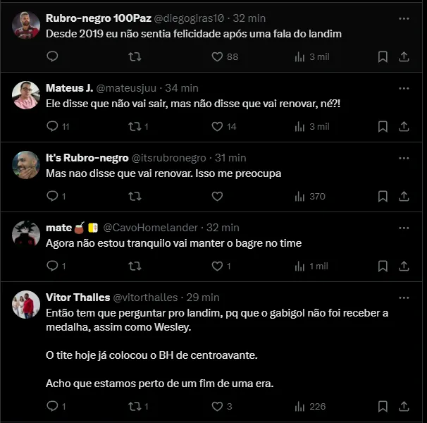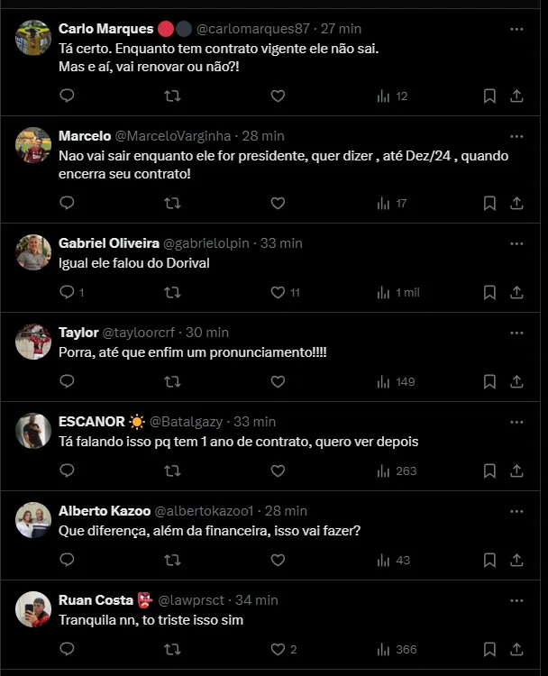 “Ele não vai sair do Flamengo! Eu sou o presidente do Flamengo, ele tem contrato com a gente, ele não vai sair. Até torcida pode ficar tranquila em relação a isso“, confirmou Rodolfo Landim.