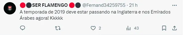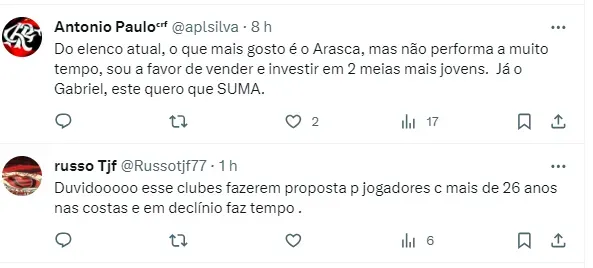 O profissional foi além: “O Flamengo não está disposto em vender o Arrascaeta pelos R$ 100 milhões sugeridos, vai haver a necessidade de uma oferta ainda maior. 100 milhões foi basicamente o que o Flamengo gastou para adquirir todos os percentuais que detém hoje”. completou.
