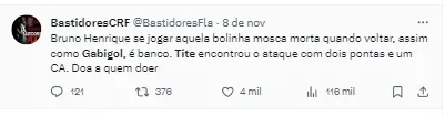 A chegada de Tite fez com que o Fla ganhasse um novo ânimo e a Nação chegou a acreditar que o time poderia brigar pelo título com os tropeços seguidos do Botafogo. Porém, uma decisão do comandante que chamou atenção é sobre Gabi ter ido pro banco.