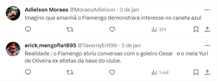 Vale destacar, inclusive, que recentemente o vice de futebol Marcos Braz, após ser questionado pelo jornalista Eric Faria, da Globo, descartou a possibilidade de negócio e afirmou que foi “especulação sem nenhum fundo de verdade”.