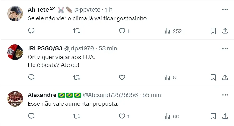 Vale destacar que o Flamengo topou aumentar a oferta e aceita para 7 milhões de euros, cerca de R$ 37 milhões na cotação atual. Valor esse que está cima do foi acordado com o jogador, onde se chegasse uma proposta de 6 milhões de euros, R$ 31 milhões, ele seria liberado.