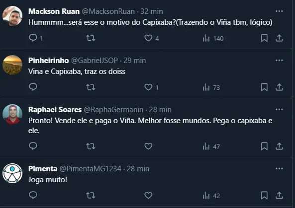 Além disso, o interesse na contratação de Juninho Capixaba também deixa algumas dúvidas no ar. Até o momento, no entanto, nenhuma proposta oficial chegou pelo jogador que passou pela Seleção Brasileira