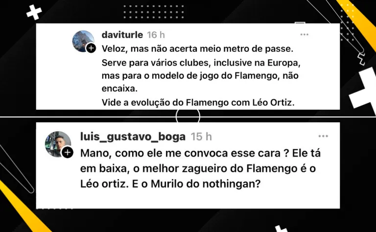 Além disso, alguns internautas questionam a sua convocação para os próximos jogos da Seleção Brasileira: “Cara é reserva no Flamengo, mas para o Dorival ele é melhor que o Murillo, ex Corinthians”.