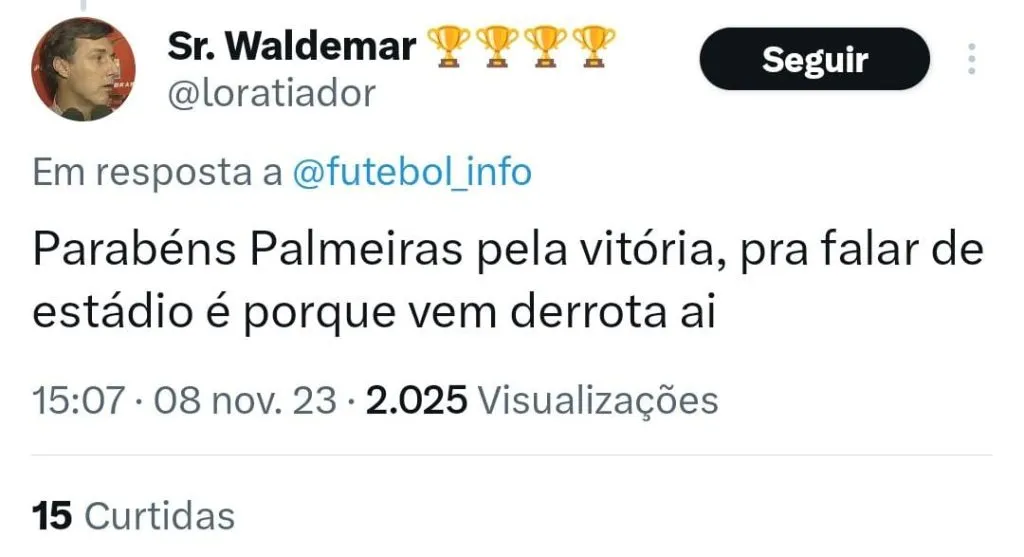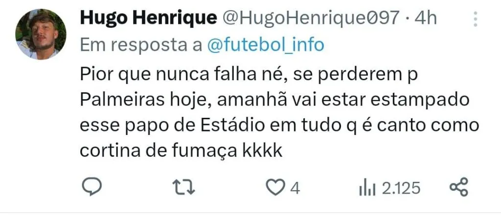 Muitos torcedores ainda apontaram a notícia como uma forma de esconder uma possível derrota diante do Palmeiras. “erraram no timing essa notícia tinha que sair só dps do jogo de hoje né kkkkk”, comentou outro.