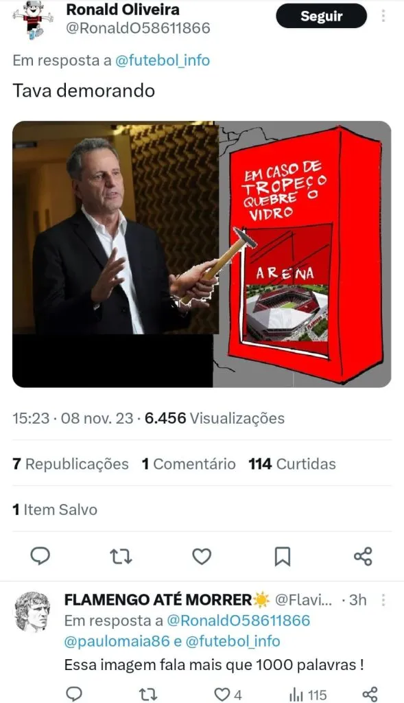 “Essa Diretoria é muito previsível: 1- Toda vez que o time está mal surge essa notícia; 2- Qdo algum clube do RJ dá um passo importante para modernizar ou construir 🏟 surge essa notícia;3- Qdo a torcida em massa começa a reivindicar 🏟 próprio surge essa notícia; Rs”, disparou um torcedor nas redes sociais.