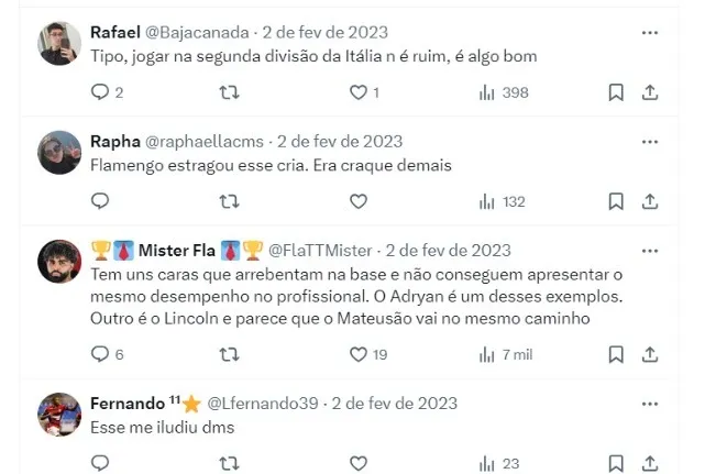 O meia Adryan, foi uma das maiores promessas das categorias de base do Flamengo. Desde que era muito jovem, o jogador recebeu olhares de todos os torcedores, que tinham uma alta expectativa em seu futebol, mas que no clube, acabou não se cumprindo.