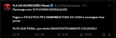 Com gols nos acréscimos do segundo tempo, no final da partida, Flamengo e Athletico empataram em 1 a 1 na Ligga Arena. Os gols da partida foram marcados por Fernandinho, para o Furacão, e Evertton, para o Rubro-Negro Carioca.