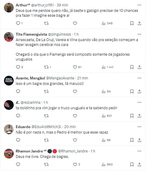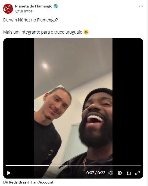 Ao encontrar o influenciador brasileiro Negrete, Darwin acabou respondendo brincadeiras que deixaram a Nação enlouquecida, já que o elenco Rubro-Negro é recheado de uruguaios, com Arrascaeta, Nico De la Cruz, Matias Viña e Guillermo Varela.