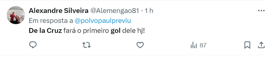 Muitos flamenguistas estão apostando na rede social do X (antigo Twitter) que o primeiro gol de Nicolás De La Cruz pelo Rubro-Negro vai acontecer contra o Nova Iguaçu, na final de hoje.