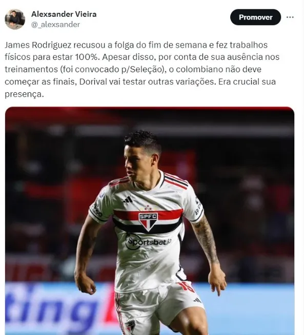 Uma informação importante sobre um craque do rival das decisões, agitou os bastidores do Rubro-Negro. James Rodríguez fez trabalhos para melhorar o condicionamento na folga deste fim de semana. O meia está decidido a fazer a diferença pelo São Paulo após o pênalti perdido.