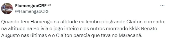 Na quarta-feira (24), o Rubro-Negro vai enfrentar o Bolívar pela Taça Libertadores, às 21h30 (horário de Brasília), em La Paz, a uma altitude de cerca de 3.600 metros.