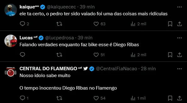 “E você, prefere Gabigol ou Pedro? Essa situação de ontem, mais uma vez, me fez refletir muito sobre os rumos da nossa sociedade. Pedro é substituído e mais uma vez, parte da torcida vaia ele. É uma situação desconfortável para ele e pro Gabi, dois garotos que eu adoro”, disse Diego Ribas, que continuou.