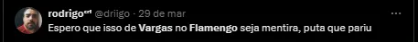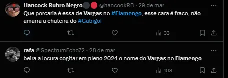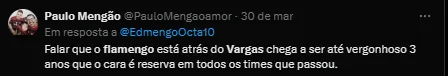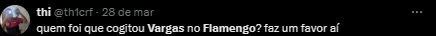 “É uma cascata essa história do Vargas. Os dirigentes do Flamengo até riem quando se fala nesta história do Vargas. Não faz o menor sentido”, revelou o colega.