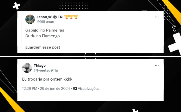 Inicialmente, esse é apenas um desejo da torcida. Vale destacar que a saída de Gabigol deve sair apenas no final da temporada, já que o jogador externou o desejo de permanecer até o fim do contrato, além de dar prioridade ao Flamengo em uma possível renovação.