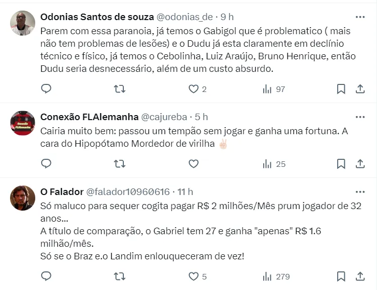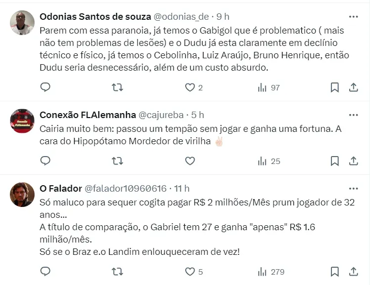 Entretanto, o que acabou chamando atenção internamente e da torcida, foi o nome do atacante Dudu, do Palmeiras, ser vinculado ao Flamengo. O jogador esteve envolvido em uma polêmica sobre a saída do Alviverde e acertar o retorno para o Cruzeiro, seu clube formador.