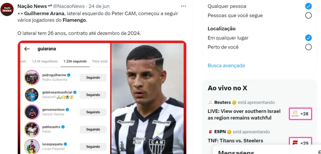 Nos últimos dias, o lateral de 25 anos vinha em negociações estagnadas para renovar seu vínculo no Atlético-MG, que expirava em dezembro de 2024. O Flamengo não formalizou propostas, mas observava de longe.