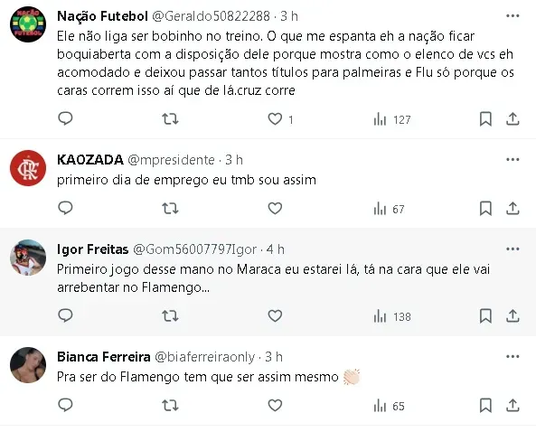 “Em qualquer parte do meio campo eu me sinto confortável. É uma decisão do treinador de onde posso ajudar a equipe. Onde ele me colocar, tentarei ajudar a equipe com o meu melhor,” afirmou De La Cruz, que expressou sua satisfação em integrar o ambiente do Flamengo.