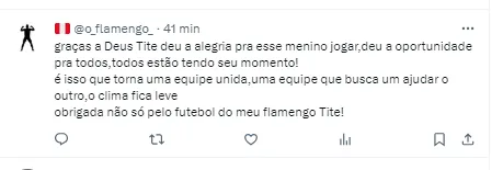 Com o apoio do técnico e aval da torcida, Pedro revelou se sentir grato por jogar no Flamengo. Apesar de ser cria da base do rival, Fluminense, o jogador já revelou torcer pelo Fla.