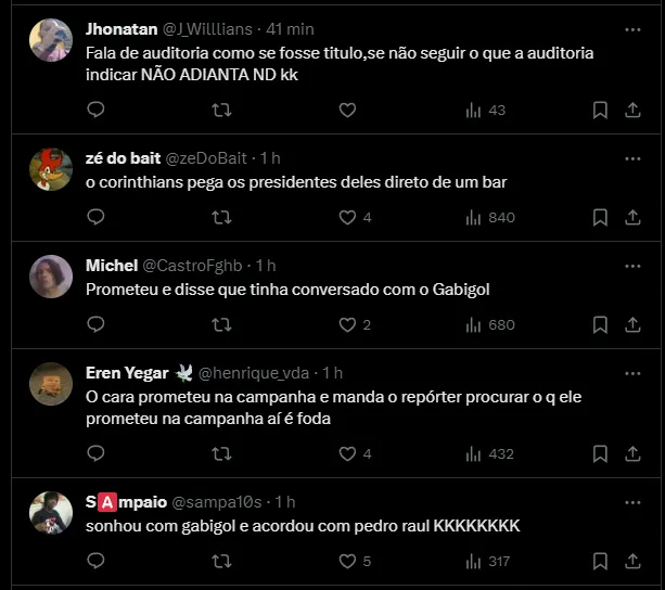 Em contrapartida, o Corinthians não vive situação fácil, soma quatro derrotas consecutivas no Campeonato Paulista. Após o último jogo, Augusto Melo falou sobre a negociação envolvendo Gabigol, atacante do Mengão: