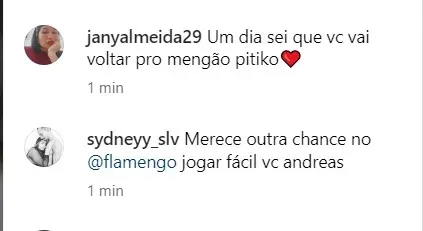 Na publicação realizada pelo jogador, torcedores do Mais Querido pedem o seu retorno a equipe. Isso porque, o jogador vem se destacando no futebol no inglês. Além da posição que ocupa em ser estar carente no elenco Rubro-Negro.