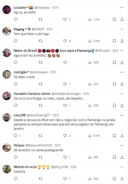 “Pelo contrário. Os agentes do uruguaio, que já toparam o projeto do Fla, com o ‘sim’ do atleta, estão conversando com o time argentino e debatendo valores para o Rubro-Negro apresentar a oferta“, finalizou.
