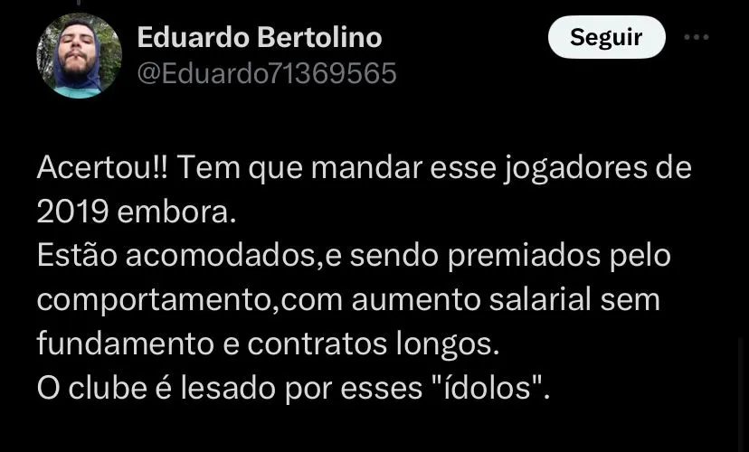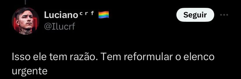 “Tite tem que se impor como treinador, fazer uma limpa no elenco do Flamengo e mostrar o caminho da seriedade, porque esse ano foi desastroso para o Flamengo”, finalizou. O ano de 2023 foi uma temporada para os jogadores e os torcedores do Flamengo esquecerem, já que o Mengão perdeu os títulos da Copa do Brasil, Campeonato Carioca, Supercopa do Brasil e Recopa Sul-Americana. Além de ter sido eliminado da Copa Libertadores e nem sequer ter disputado a final do Mundial de Clubes.