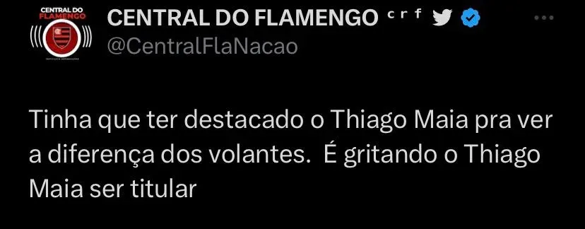 Na última quinta-feira (19), o Flamengo voltou a vencer na Série A do Campeonato Brasileiro, na estreia do treinador Tite, o Mengão venceu o Cruzeiro por 2 a 0 fora de casa, com gols de Ayrton Lucas e Pedro. Como titular na estreia do técnico Tite, Thiago Maia comemorou o triunfo e comentou que o grupo está ‘mais leve’.