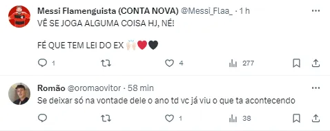 Apesar da crítica de parte da torcida na internet, que cobra pelo retorno de Gabriel artilheiro, o homem que decidiu duas Libertadores para o Clube da Gávea ainda carrega grande prestígio. Foram muitos os comentários que apostaram na lei do ex para mais tarde.