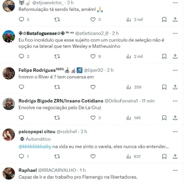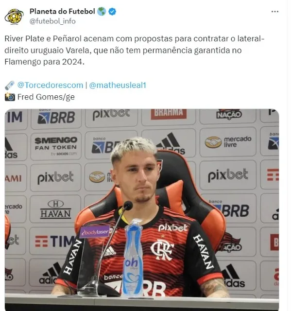 Segundo o jornalista Matheus Leal, do site Torcedores, River Plate e Peñarol acenam com propostas para contratar o lateral-direito uruguaio Varela, que não tem permanência garantida no Flamengo para 2024.