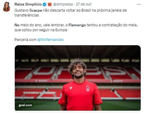 Nicola detalhou que o Forest exige uma compensação financeira para liberar Scarpa, mas o alto custo salarial, deve ser mais uma barreira para o Palmeiras, já que, se um meio-termo, ele aumentaria a folha de pagamento, um problema que acompanha o clube paulista no mercado.