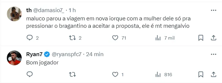 Por conta disso, nesta madrugada o defensor interrompeu as férias em Nova Iorque para ‘cobrar’ o Bragantino, de acordo com o portal GE. O jogador que está decidido a ir para o Flamengo, conversou com Diego Cerri, dirigente do Massa Bruta, se posicionando de maneira firme para que o clube seja flexível e feche com a equipe carioca.